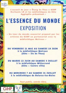 Les bénéficiaires de l’Accueil de Jour de l’étang de Thau sont heureux de vous présenter leur nouvelle exposition sur le thème de « L’essence du Monde ».