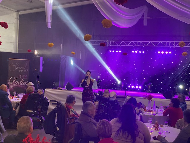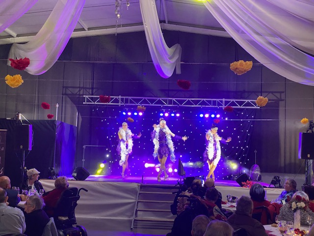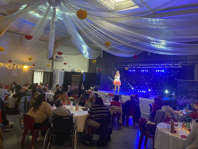 Les convives ont tout d’abord dégusté un déjeuner de fête, puis l’après-midi s’est agréablement poursuivie, pour le plus grand bonheur de tous, avec la représentation donnée par la revue “1001 Ladies”, composée d’une chanteuse, 3 danseuses et 1 responsable Régie Son et lumières.
