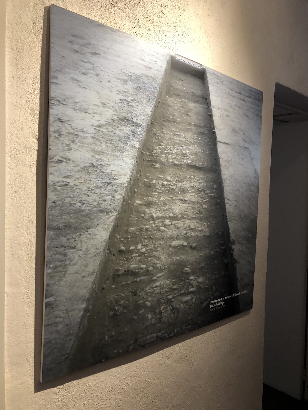 Photo 3 : Copie d’une dalle en marbre, découverte en 1969, qui confirme que Bram n’était pas qu’une station d’arrêt mais une ville importante. Il est écrit que 3 magistrats firent construire un théâtre avec leur propre argent.