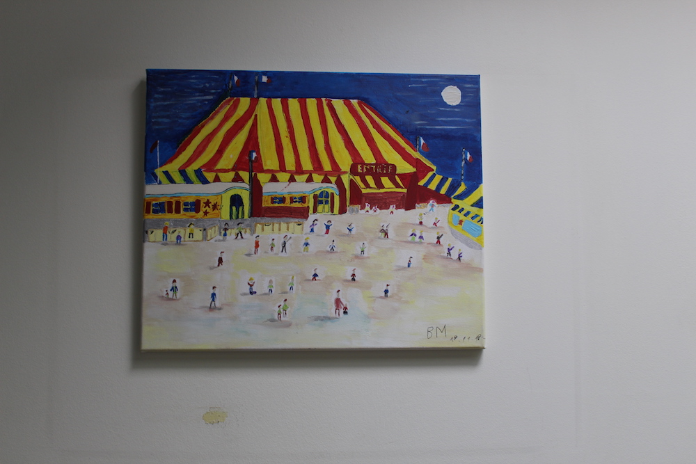 Ces œuvres sont le résultat d’un travail de plusieurs mois et associent peinture et textes de slam. Pendant le vernissage, lecture a été donnée par des bénéficiaires de textes illustrant les tableaux présentés.